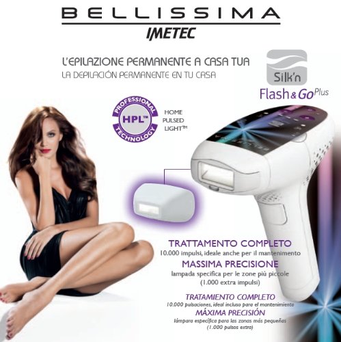 - BELLISSIMA FLASH &GO PLUS Epilatori a luce pulsata: L'epilazione permanente a casa tua grazie alla Home Pulsed LightTM (HPLTM): la tecnologia professionale della luce pulsata Efficace e indolore ?Risultato garantito. Riduzione permanente dei peli superflui fino al 90% dopo pochi trattamenti * *Clinicamente testato su 62 donne con fototipo II-V (Scala Fitzpatrick) dopo sei sedute di trattamento Trattamento completo: 10.000 impulsi, ideale anche per il mantenimento Massima precisione: lampada specifica per le zone più piccole (1.000 extra impulsi)
