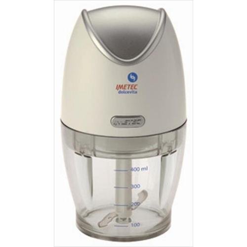 Description : Tritatutto Imetec 7334 Dolcevita CH5Caratteristiche Tecniche: Potenza 180 watt, recipiente graduato da 400 ml, funzionamento ad impulsi, doppio sistema di sicurezza del coperchio, lame inox tritatutto.Contenuto della confezione:Tritatutto, manuale d'istruzione uso.Garanzia: 24 mesi