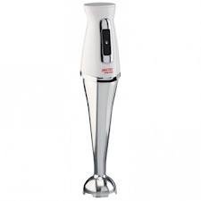 Description : Frullatore ad immersione che frulla alimenti caldi con gambo in acciaio inox antischizzo, funzionamento ad impulsi per calibrare la lavorazione, potenza 170 Watt.